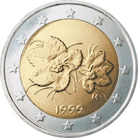 Je me suis trompée ou plutôt je me suis rappelée qu'une amie (elle n'est pas la seule) collectionnait dans les débuts de l'euro les pièces de 1 ou 2 euros ayant les faces des autres pays de la zone euro. Il ne m'en a pas fallu plus pour fureter à la recherche de pages visualisant ces faces (avers) dont je me suis contentée d'en recopier et compléter l'énumération.
